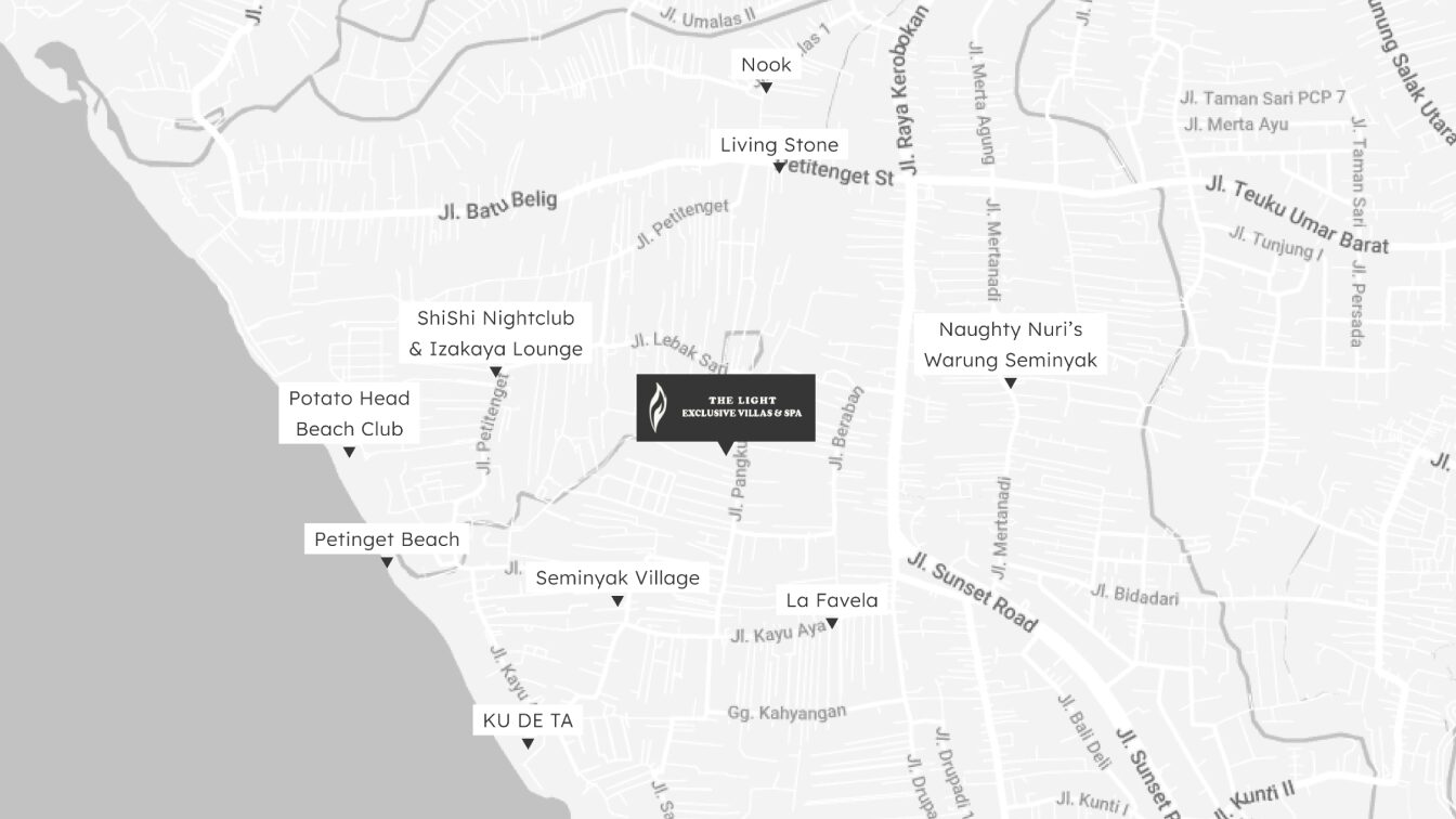Nestled in the upscale area of Seminyak, The Light Exclusive Villas & Spa offers an idyllic holiday through its unbeatable location. Relax in your private hideaway decked out with every imaginable luxury and amenity, a perfect treat for honeymooners, family or a group of friends.